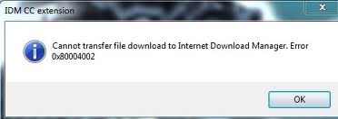 Error 0x80029c4a idm cc extension cannot transfer the download to idm errors can freeze or crash your computer and may lead to possible .